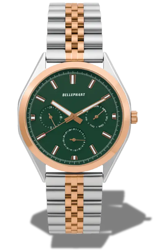 From our Trunk Line collection, this Silver & Rose Two-Tone Chronograph embodies timeless sophistication and precision engineering. Available with your choice of White, Black, or Dark Green dial, it’s designed for those who demand elegance, versatility, and flawless performance in every detail.